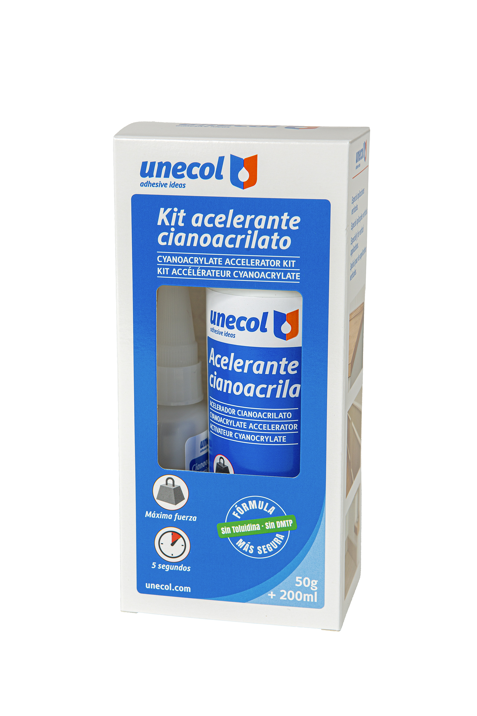 Cianoacrilato + aerosol acelerante para uniones de materiales porosos y uniones verticales, pegado instantáneo. SIN DMTP, SIN TOLUIDINA